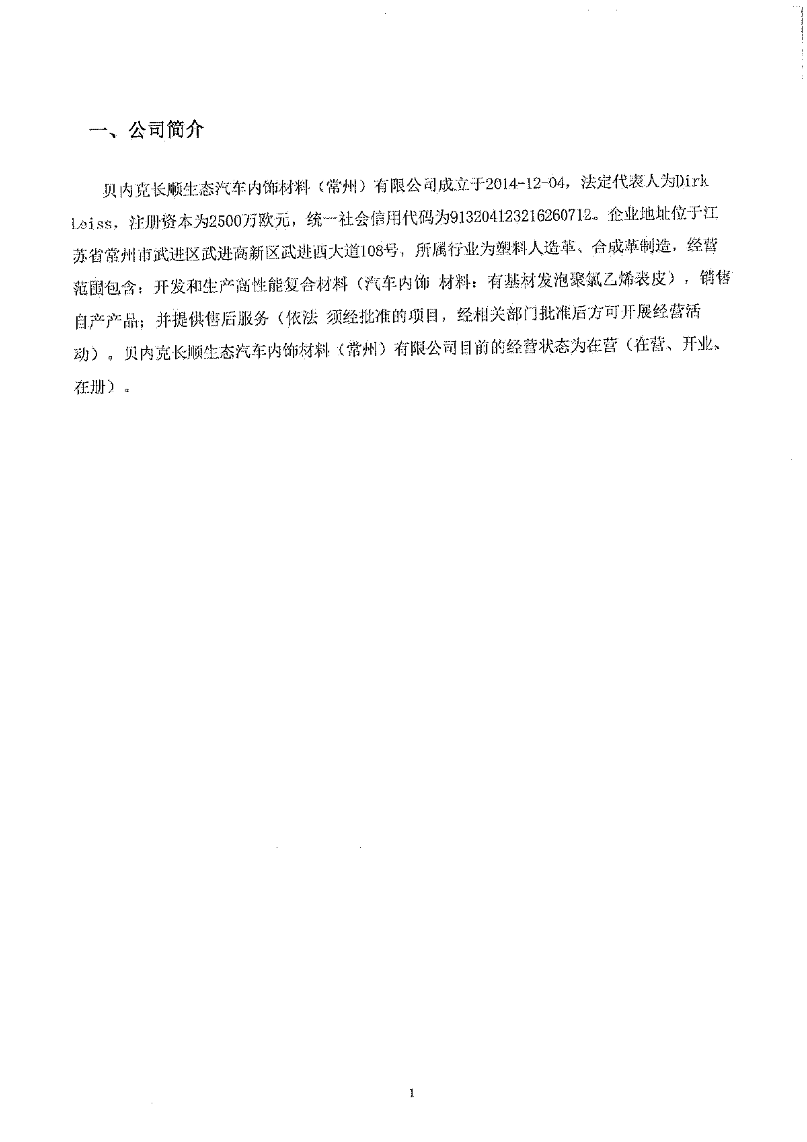 貝內(nèi)克長順生態(tài)汽車內(nèi)飾材料(常州)有限公司社會責(zé)任報告(2020年度)