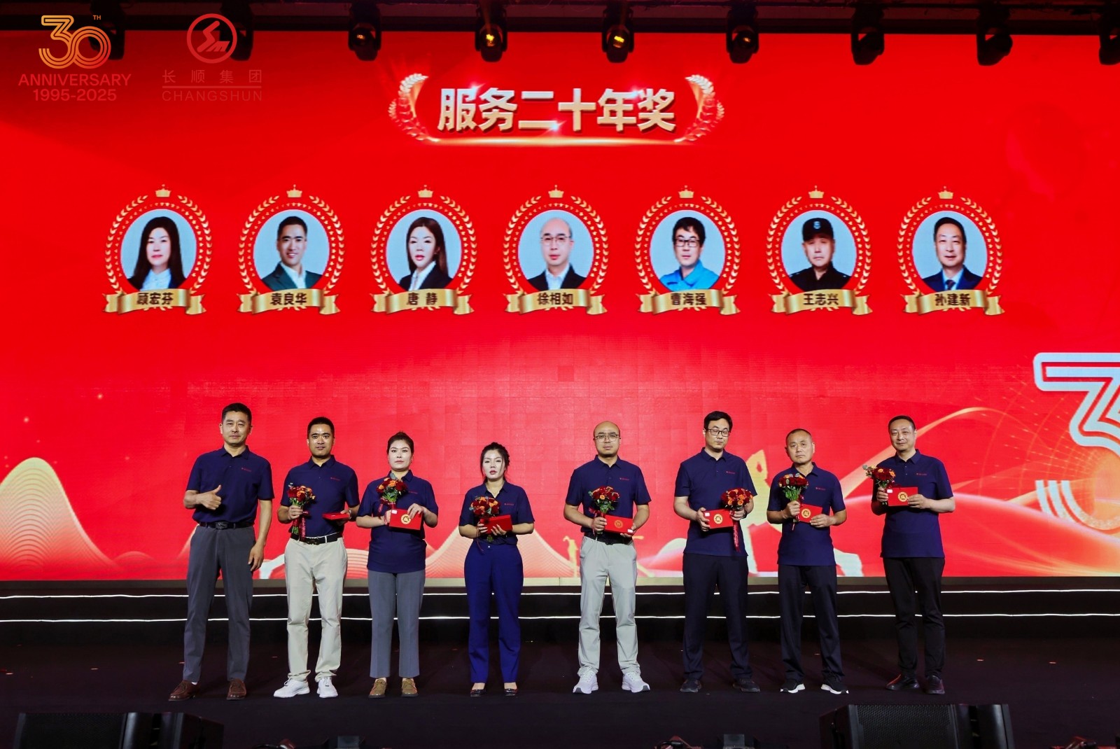 慶典以大家齊唱《長順之歌》正式啟幕。表彰環節,集團對服務五年、十年、十五年、二十年以及作出卓越貢獻的員工進行了隆重表彰。當獲獎者們走上領獎臺,接過鮮花和獎品時,現場響起熱烈的掌聲。這些榮譽,不僅是對他們過去付出的肯定,更是對未來工作的激勵與期許。他們,是長順集團的脊梁,是長順精神的傳承者。