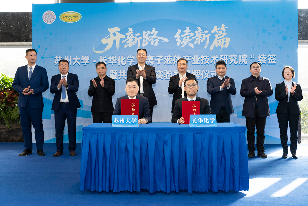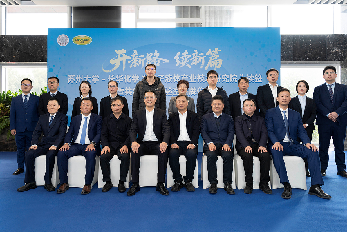 2025年12月16日,長華化學與蘇州大學“離子液體產業技術研究院”續簽暨共建聯合實驗室揭牌儀式順利舉行。此次續約不僅是雙方前期合作的延續與升華,更是對未來攜手推動離子液體技術規模化、產業化發展的重要布局。長華化學將持續以科技創新為引擎,驅動傳統產業轉型升級,加大研發資源投入,積極引進高端科研人才,構建涵蓋基礎研究、技術開發與產業應用的全鏈條創新體系,力求成為張家港綠色低碳發展的標桿企業,為本地科技創新事業及國家“雙碳”目標的達成貢獻力量。